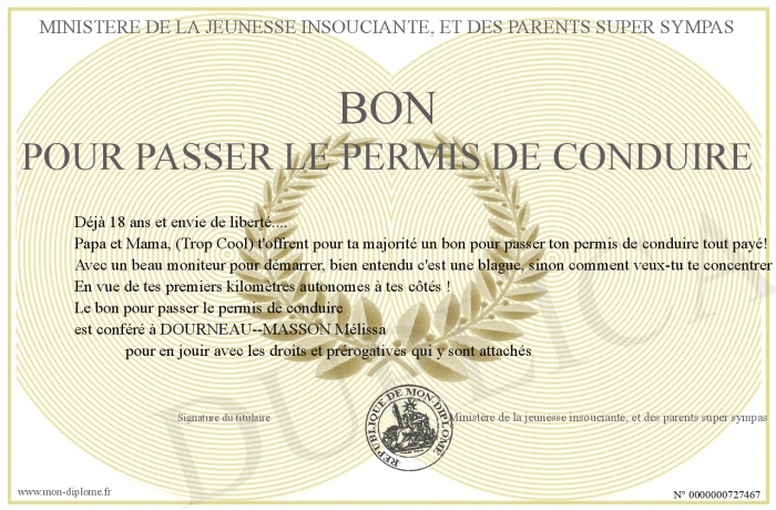 Envoyez par email votre bon pour passer le permis de conduire personalisé