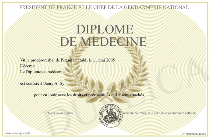 Envoyez par email votre Diplôme de médecine personalisé