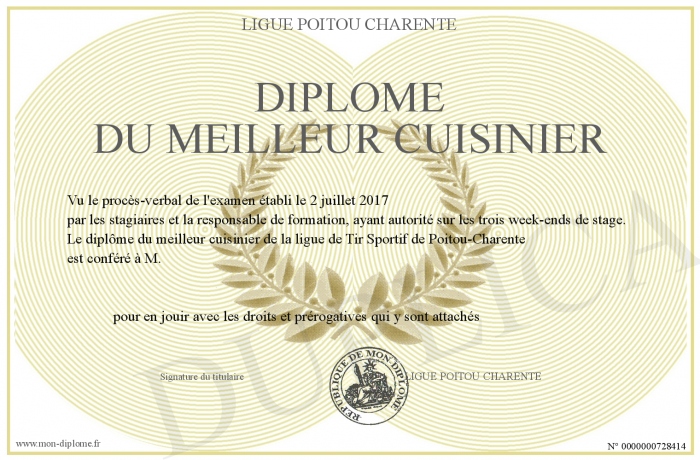 Envoyez par email votre Diplôme du Meilleur Cuisinier personalisé