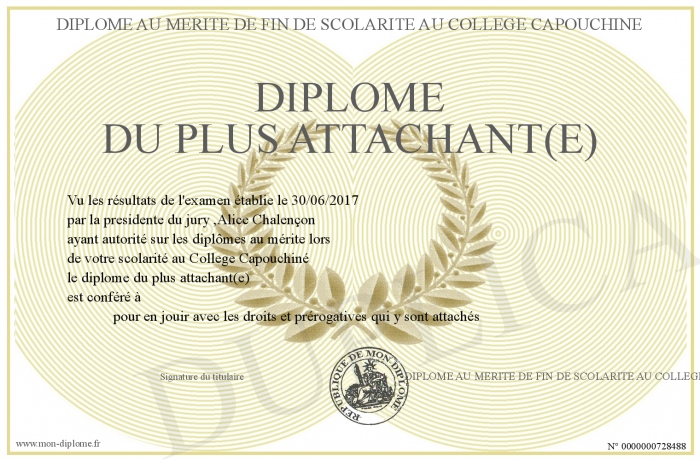 Envoyez par email votre Diplôme du plus attachant(e) personalisé