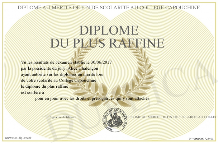 Envoyez par email votre Diplôme du plus raffiné personalisé
