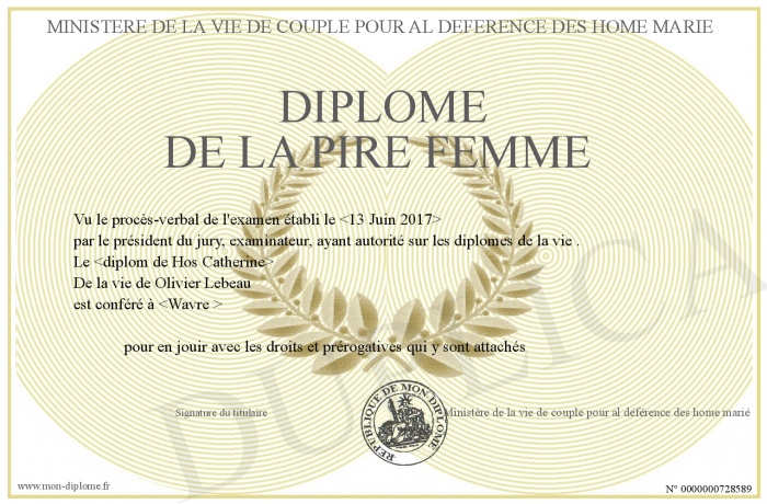 Envoyez par email votre Diplôme de la pire femme personalisé