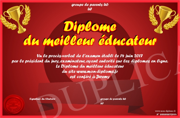 Envoyez par email votre Diplôme du meilleur éducateur personalisé