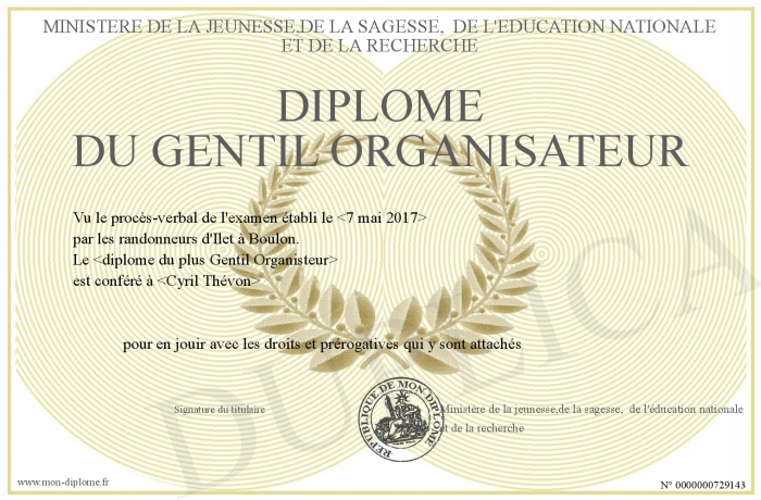 Envoyez par email votre Diplôme du Gentil Organisateur personalisé