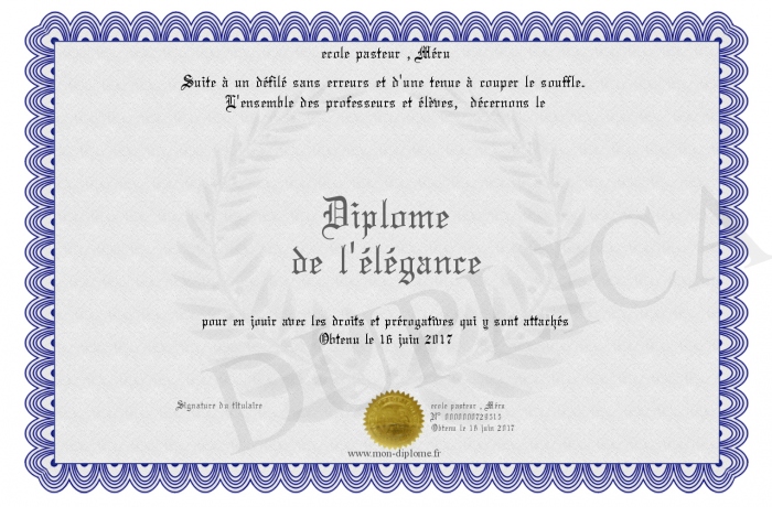Envoyez par email votre Diplôme de l'élégance personalisé