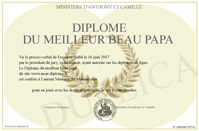 Envoyez par email votre Diplôme du meilleur beau papa personalisé