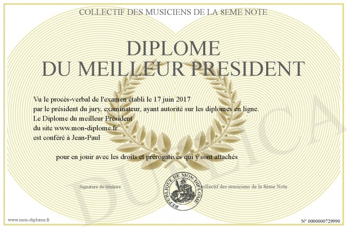 Envoyez par email votre Diplôme du meilleur Président personalisé