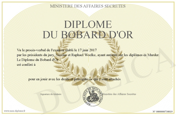 Envoyez par email votre Diplôme du Bobard d'Or personalisé