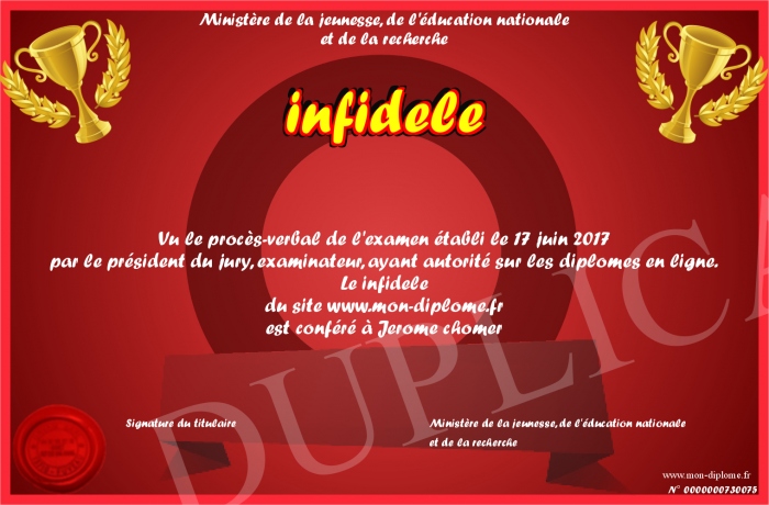 Envoyez par email votre infidele personalisé