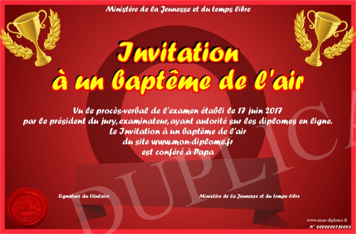 Envoyez par email votre Invitation à un baptême de l'air personalisé