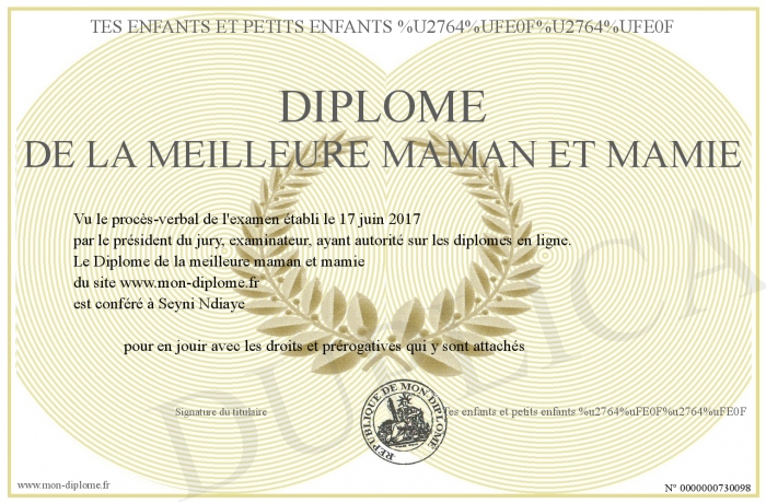 Envoyez par email votre Diplôme de la meilleure maman et mamie personalisé