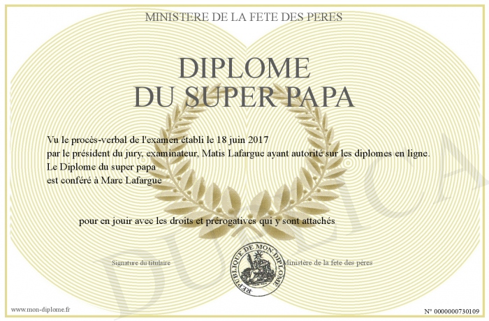 Envoyez par email votre Diplôme du super papa personalisé