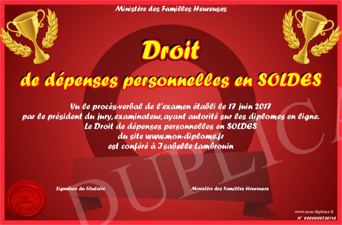 Envoyez par email votre Droit de dépenses personnelles en SOLDES personalisé