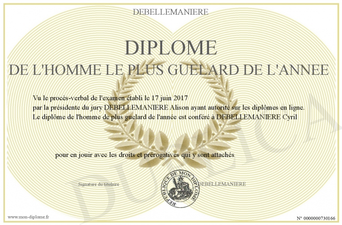 Envoyez par email votre Diplôme de l'homme le plus guelard de l'année personalisé