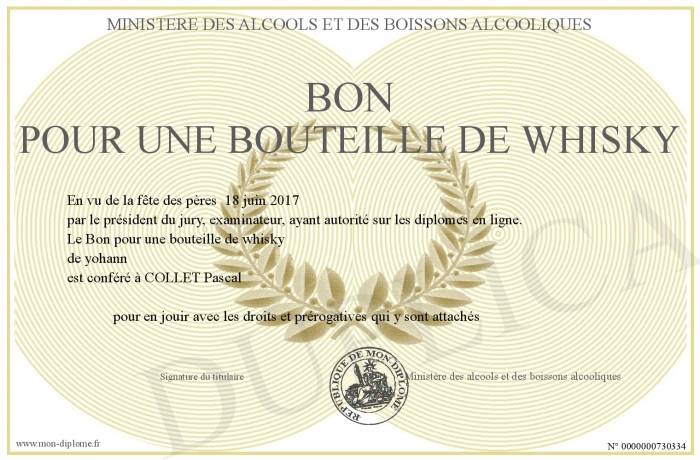 Envoyez par email votre Bon pour une bouteille de whisky personalisé