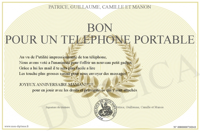 Envoyez par email votre Bon pour un téléphone portable personalisé