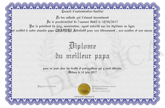 Envoyez par email votre Diplome du meilleur papa personalisé