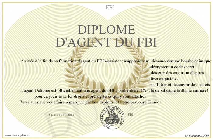 Envoyez par email votre Diplôme d'agent du FBI personalisé
