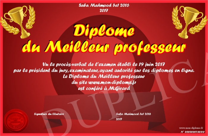 Envoyez par email votre Diplôme du Meilleur professeur personalisé