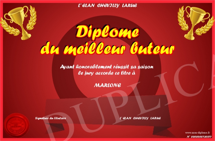 Envoyez par email votre Diplôme du meilleur buteur personalisé