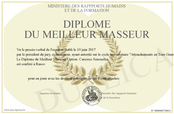 Envoyez par email votre Diplôme du Meilleur Masseur personalisé