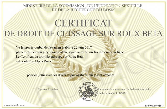 Envoyez par email votre Certificat de droit de cuissage sur Roux Beta personalisé