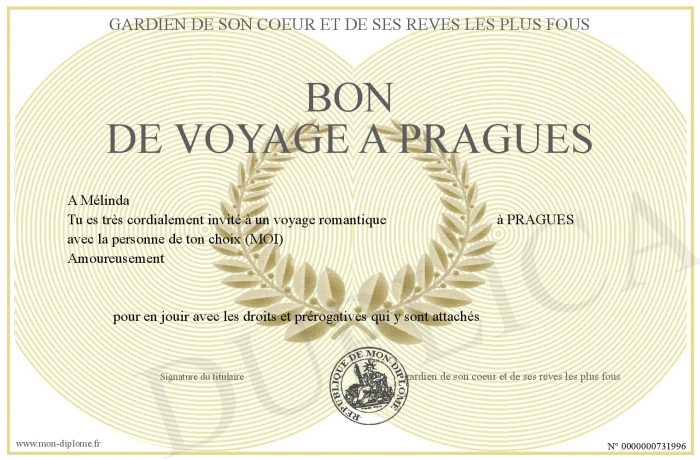 Envoyez par email votre BON DE VOYAGE A PRAGUES personalisé