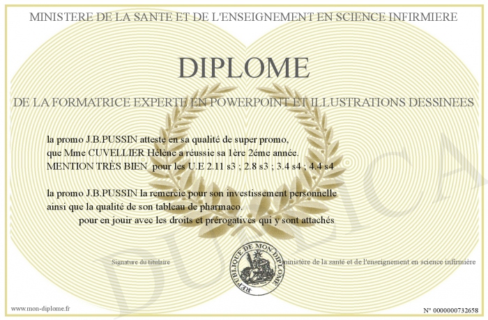 Envoyez par email votre DIPLOME DE LA FORMATRICE experte en powerpoint et illustrations dessinées personalisé