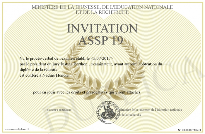 Envoyez par email votre Invitation ASSP 19 personalisé