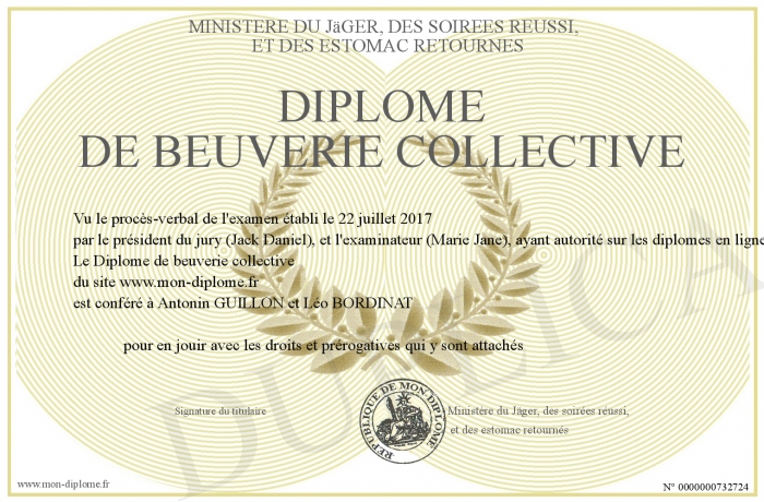 Envoyez par email votre Diplôme de beuverie collective personalisé