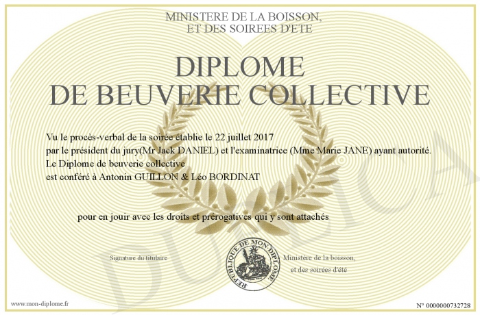 Envoyez par email votre Diplôme de beuverie collective personalisé