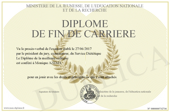 Envoyez par email votre Diplôme de fin de carrière personalisé