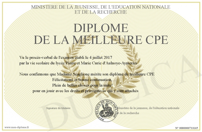Envoyez par email votre Diplôme de la meilleure CPE personalisé