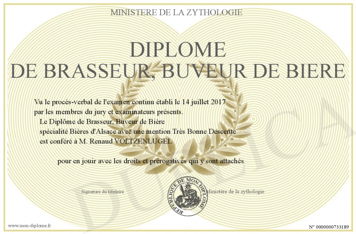 Envoyez par email votre Diplôme de Brasseur, Buveur de Bière personalisé