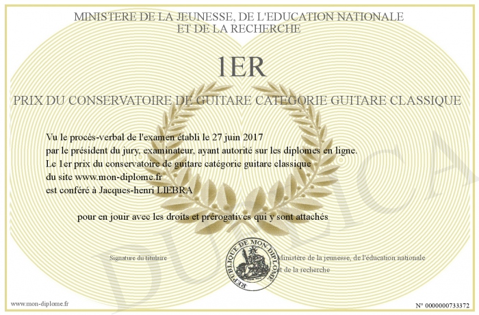 Envoyez par email votre 1er prix du conservatoire de guitare catégorie guitare classique personalisé
