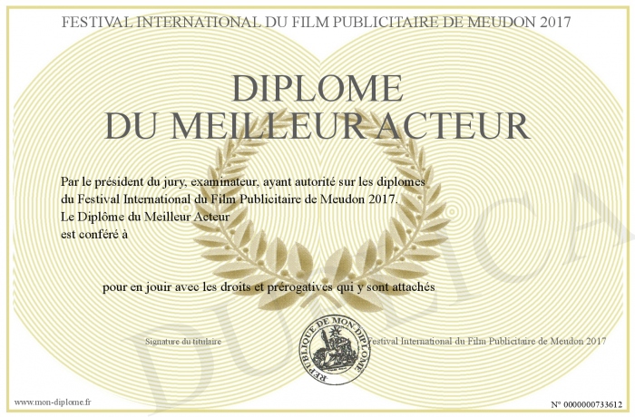 Envoyez par email votre Diplôme du Meilleur Acteur personalisé