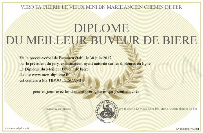 Envoyez par email votre Diplôme du Meilleur buveur de biere personalisé