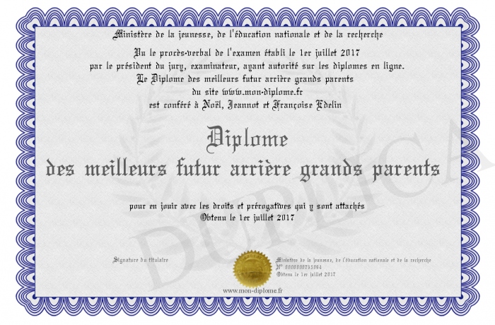 Envoyez par email votre Diplôme des meilleurs futur arrière grands parents personalisé