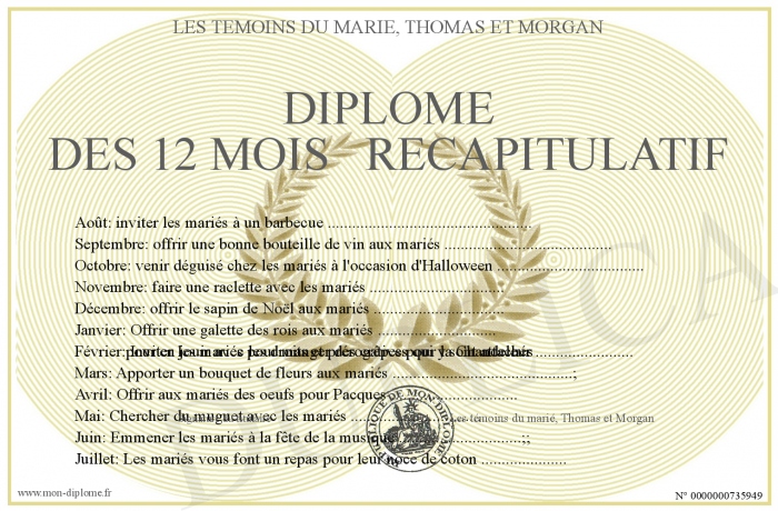 Envoyez par email votre Diplôme des 12 mois Récapitulatif personalisé