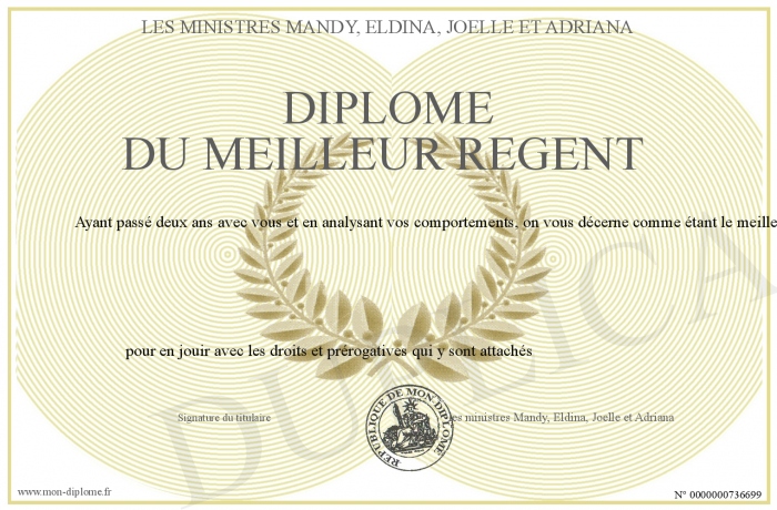 Envoyez par email votre Diplôme du meilleur régent personalisé