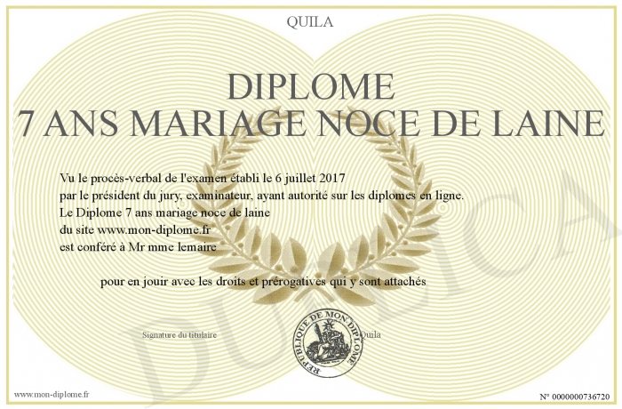 Envoyez par email votre Diplome 7 ans mariage noce de laine personalisé
