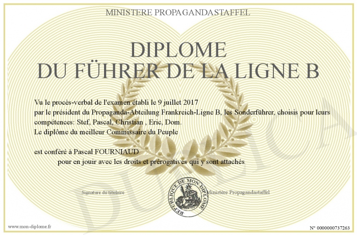 Envoyez par email votre Diplôme du FÜHRER DE LA LIGNE B personalisé