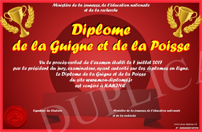 Envoyez par email votre Diplôme de la Guigne et de la Poisse personalisé