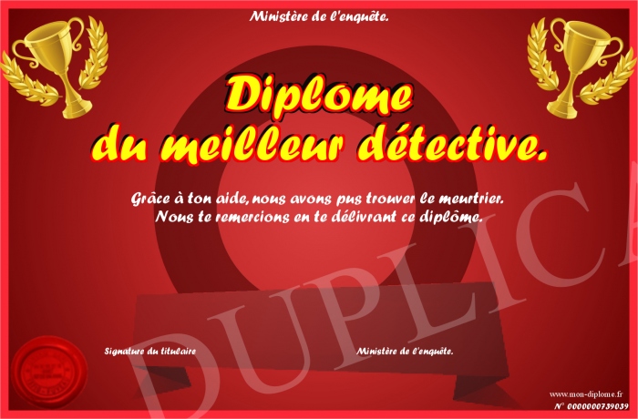 Envoyez par email votre Diplôme du meilleur détective. personalisé
