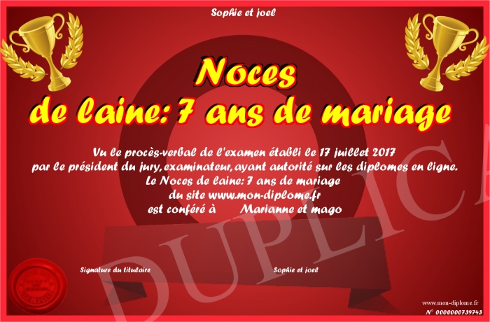 Envoyez par email votre Noces de laine: 7 ans de mariage personalisé
