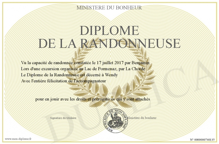 Envoyez par email votre Diplôme de la Randonneuse personalisé