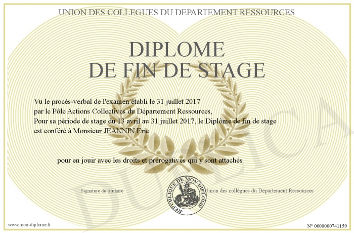 Envoyez par email votre Diplôme de fin de stage personalisé