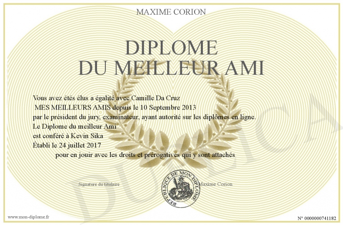 Envoyez par email votre Diplôme du meilleur Ami personalisé