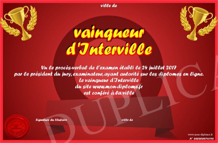 Envoyez par email votre vainqueur d'Interville personalisé