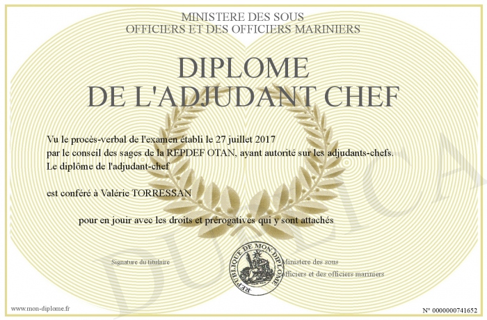 Envoyez par email votre Diplôme de l'ADJUDANT CHEF personalisé